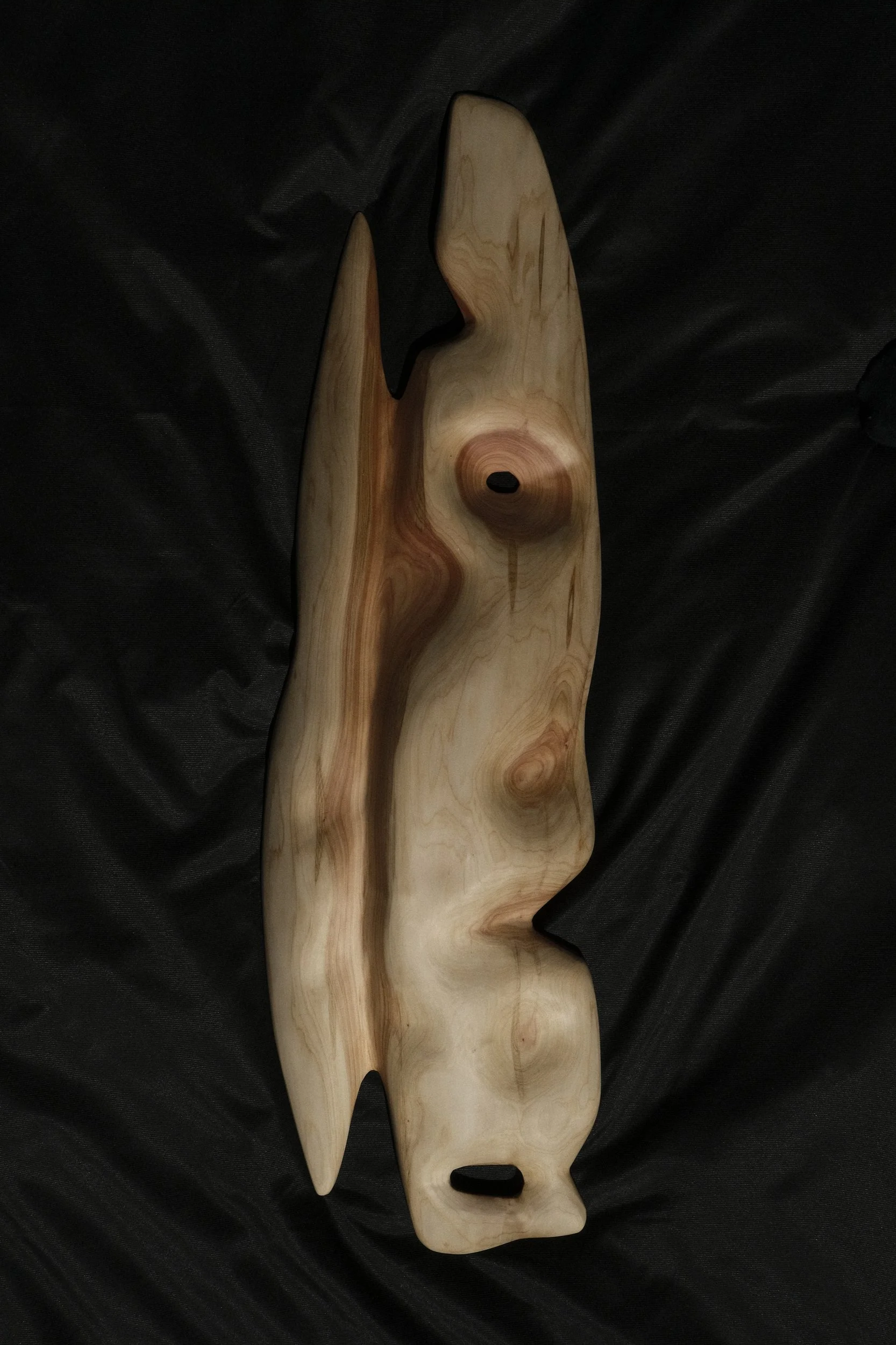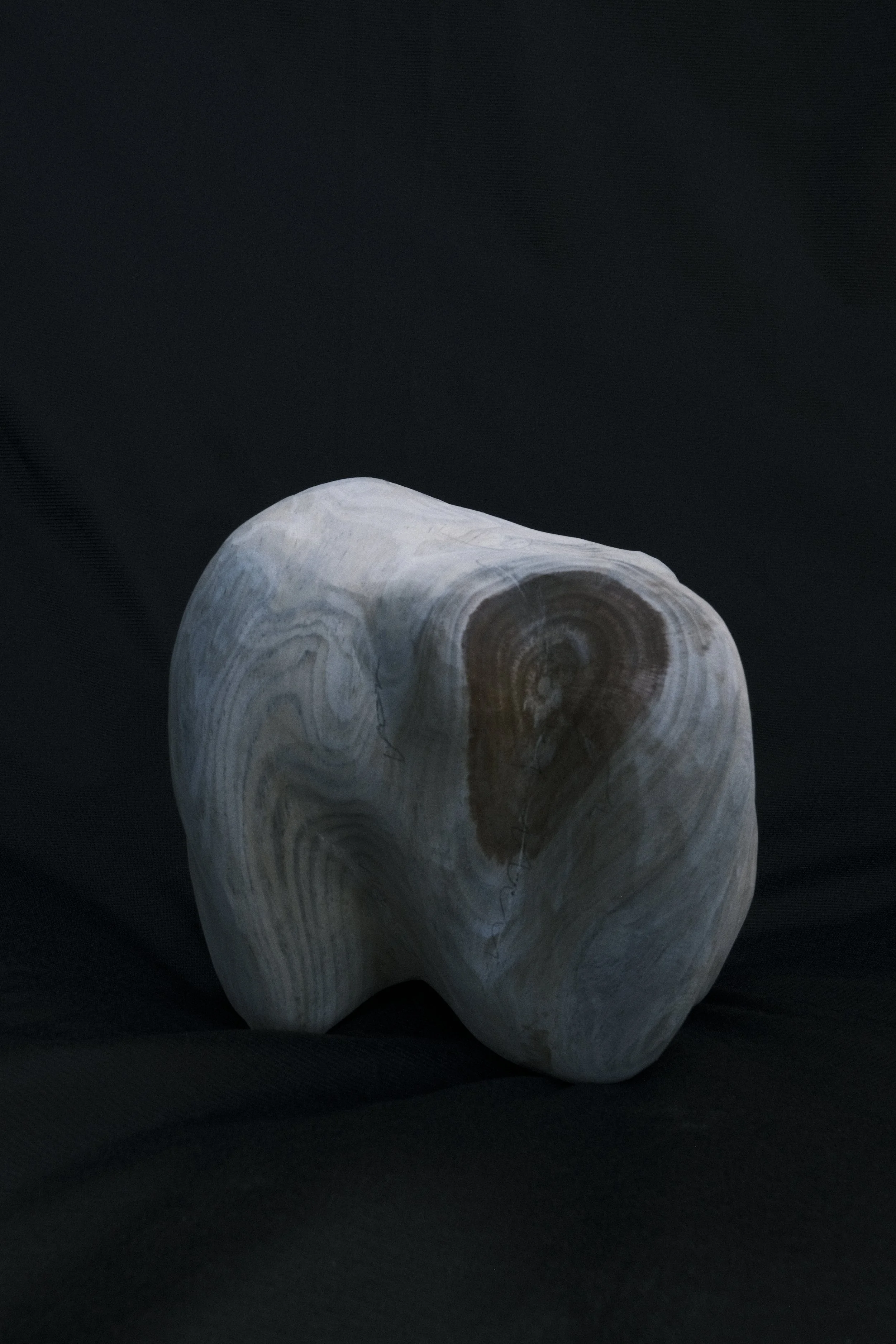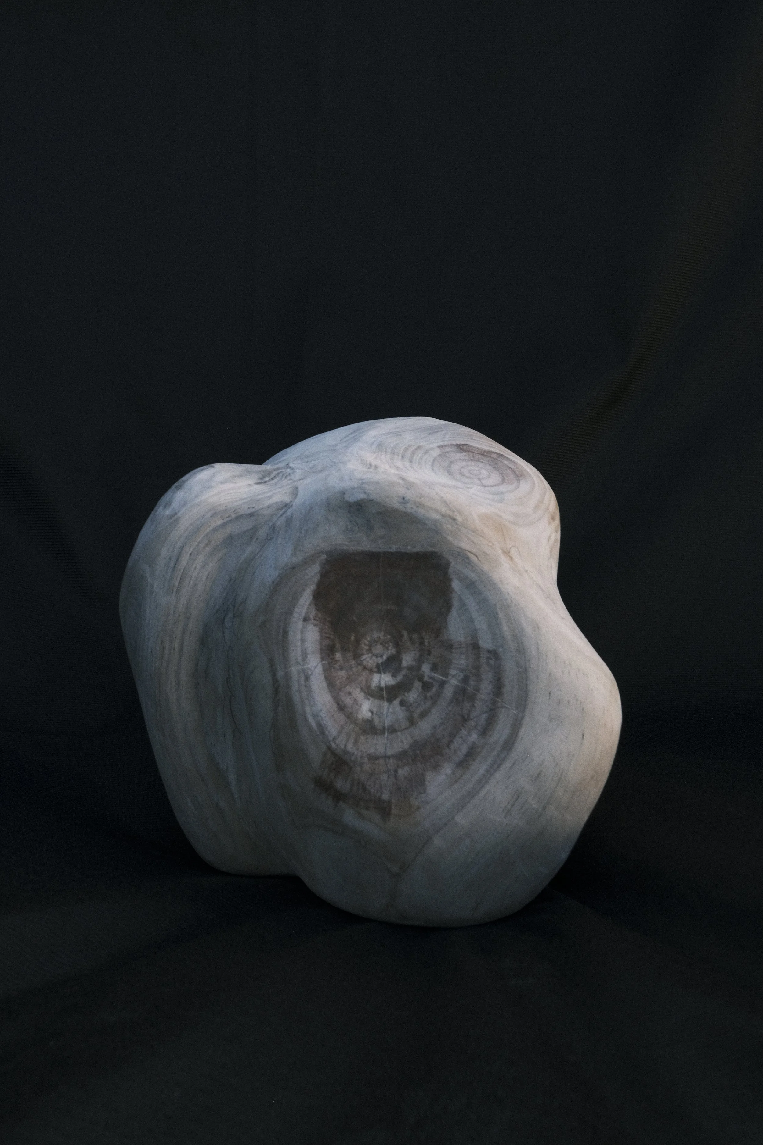 A dialogue is formed between the material and sculptor, with each reacting to the another. The final forms are a result of this process as opposed to artistic expression. Offcuts (logs, wedges, skims, cookies) become their own sculptural typologies (totems, vessels, maps).