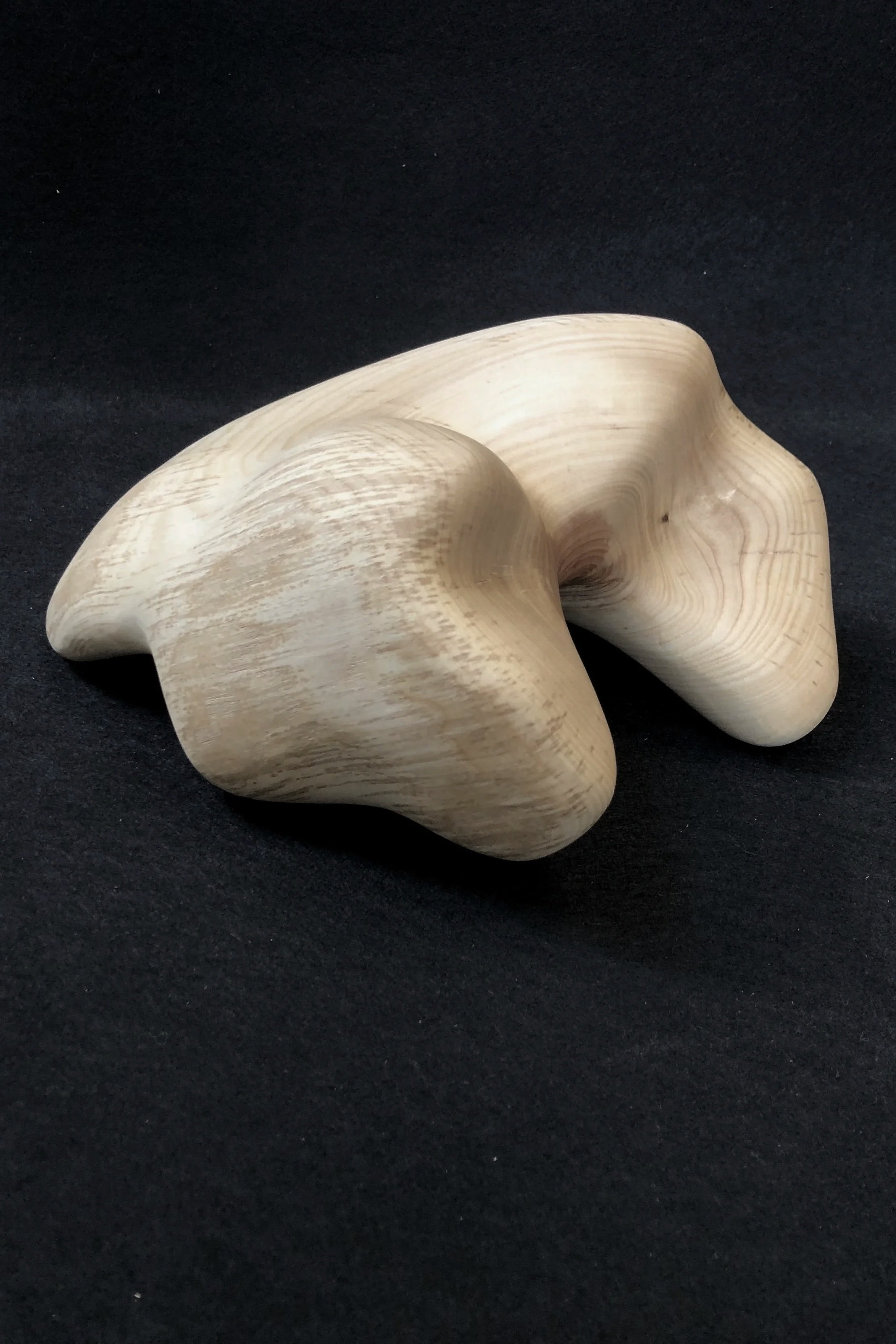 After collection, preservation becomes the priority. Elements that jeopardize the longevity of each piece (insects, rot, bark inclusions, cracks…) are excavated with an angle grinder. As material is removed and the piece dries, pressure stored in the wood is released and new cracks form. These are subsequently removed until the piece stabilizes.